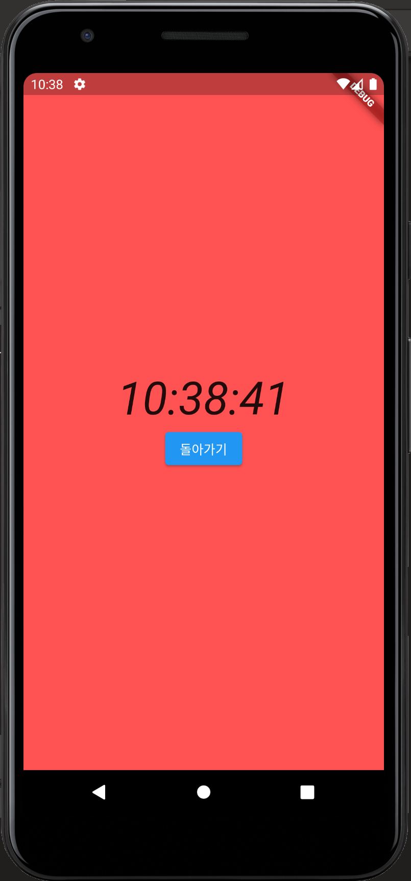 1초마다 호출되는 _getTime 메소드에서는 DateTime을 이용해서 현재시간을 취득한 후 문자열로 바꿔주고 있습니다. 그리고 Text위젯을 갱신해줘야 하기 때문에 setState를 호출하면서 _time프로퍼티에 시간의 문자열을 설정해 주고 있습니다