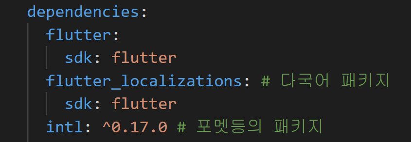 clock.dart에서는 시간 포맷을 사용하고 있으므로 pubspec.yaml에 intl 패키지를 추가해 주어야 합니다.