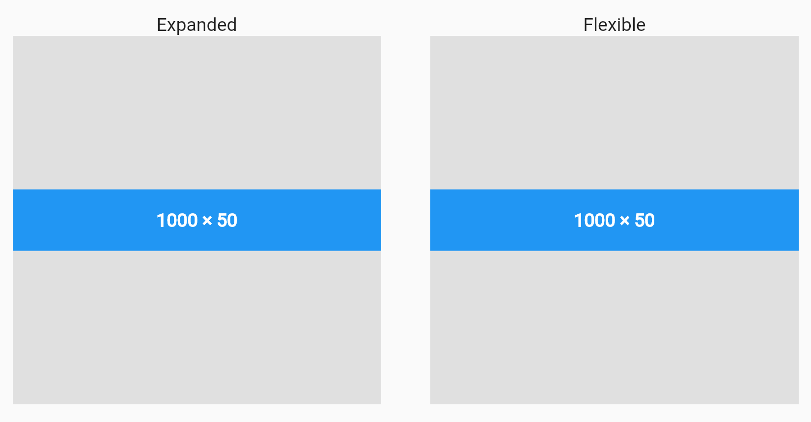 이 경우에는 Expanded와 Flexible의 결과가 동일합니다. child 요소의 크기가 부모보다 클 때는 그 최대 사이즈로 맞춰서 그려지게 됩니다.