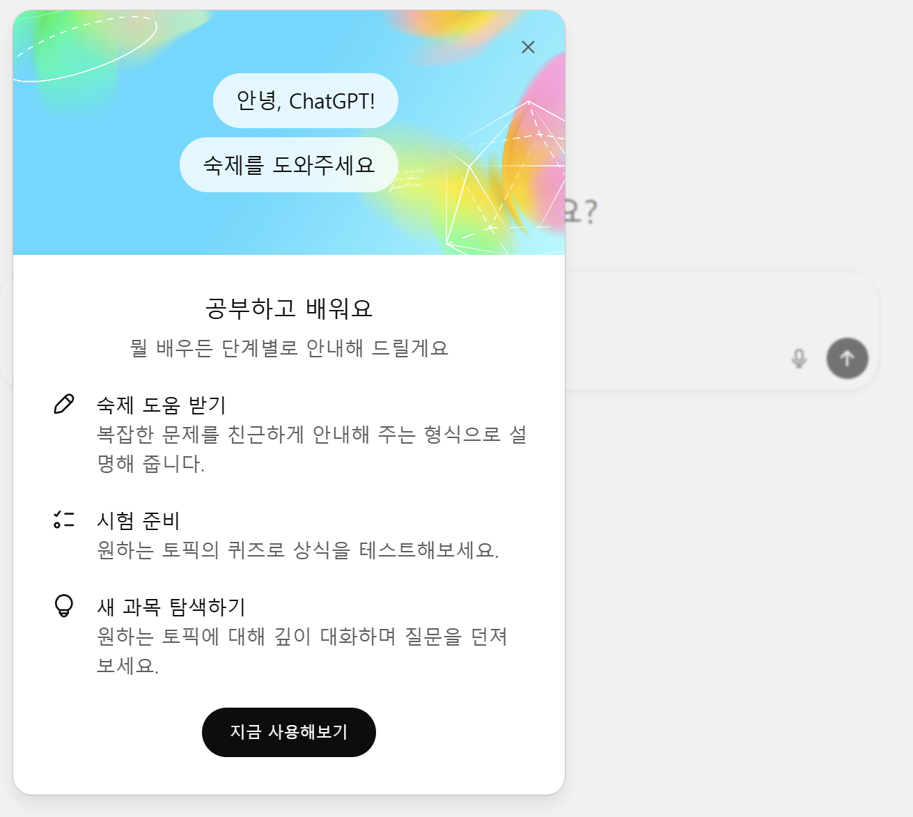기존 ChatGPT는 사용자가 질문하면 즉각적으로 정답을 제시하는 방식이었습니다. 하지만 학습 모드는 다릅니다. 이 모드를 활성화하면 ChatGPT는 소크라테스식 질문 기법을 활용하여 사용자에게 질문을 던지고, 개념을 단계별로 이해하도록 유도합니다. 예를 들어, 문제에 대한 답을 바로 알려주는 대신 "다음에는 어떤 일이 일어날 것이라고 생각하나요?" 또는 "이 단계가 왜 중요하다고 생각하나요?"와 같은 질문을 통해 학생 스스로 생각하고 답을 찾아가도록 돕습니다. 이는 수동적인 정보 습득을 넘어 능동적인 문제 해결 능력을 키우는 데 중점을 둡니다.