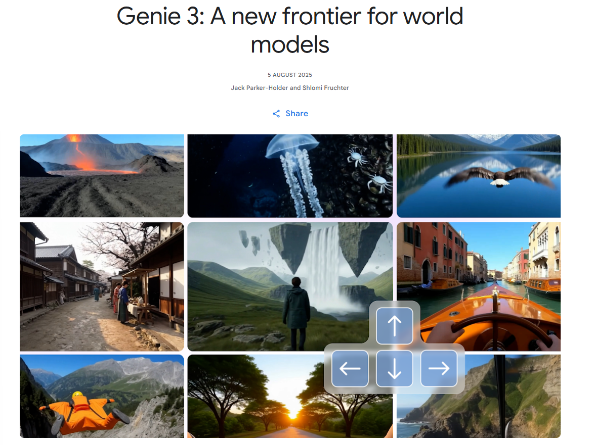 - Genie 3: A new frontier for world models - Google DeepMind: https://deepmind.google/discover/blog/genie-3-a-new-frontier-for-world-models/