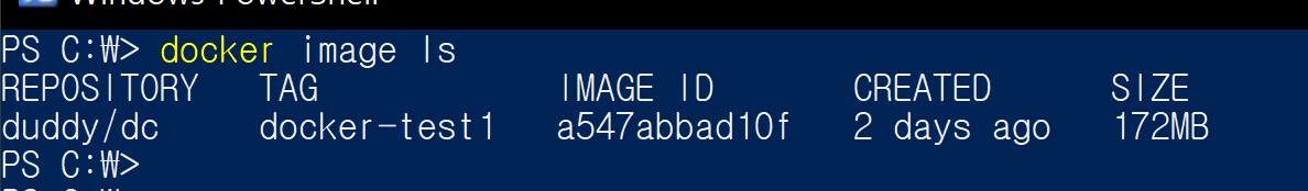 현재 한 개의 이미지가 존재하지만 dock hub에 올라가 있는 이미지로 실행하고 싶으므로 로컬 사본을 삭제하겠습니다.