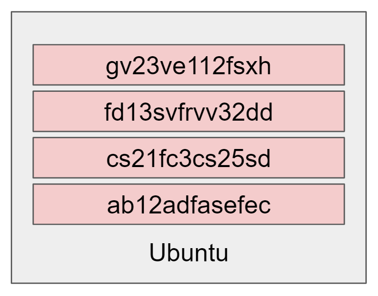 예를 들어 ab로 시작하는 Ubuntu의 맨 아래의 특정 파일 레이어를 다른 이미지에 사용된다면 파일이 이미 감지되어 있을 것이고 다시 다운로드할 필요가 없어지게 됩니다. 단지 이미지들 사이에서 파일 레이어를 공유하게 됩니다.