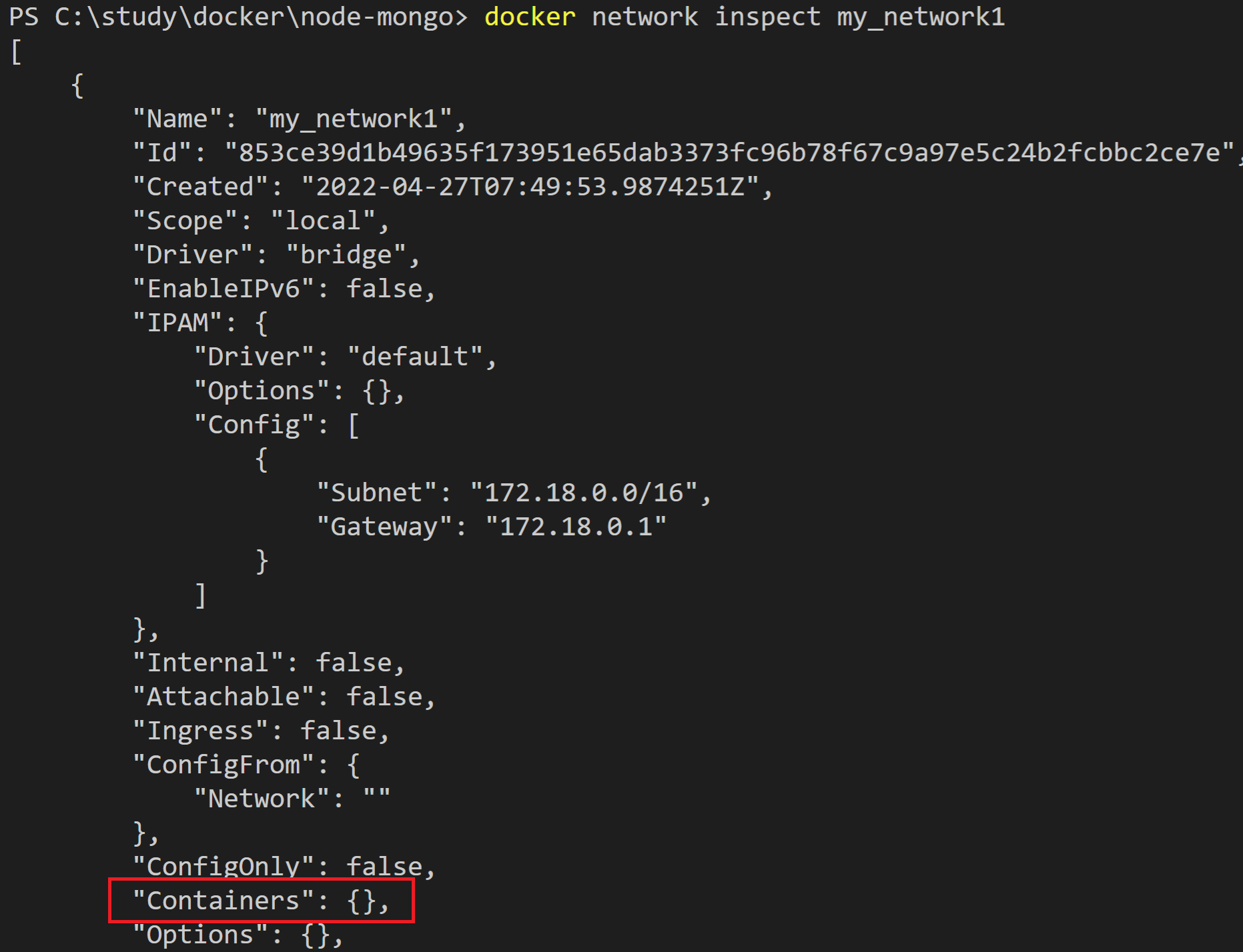 docker network inspect my_network1
