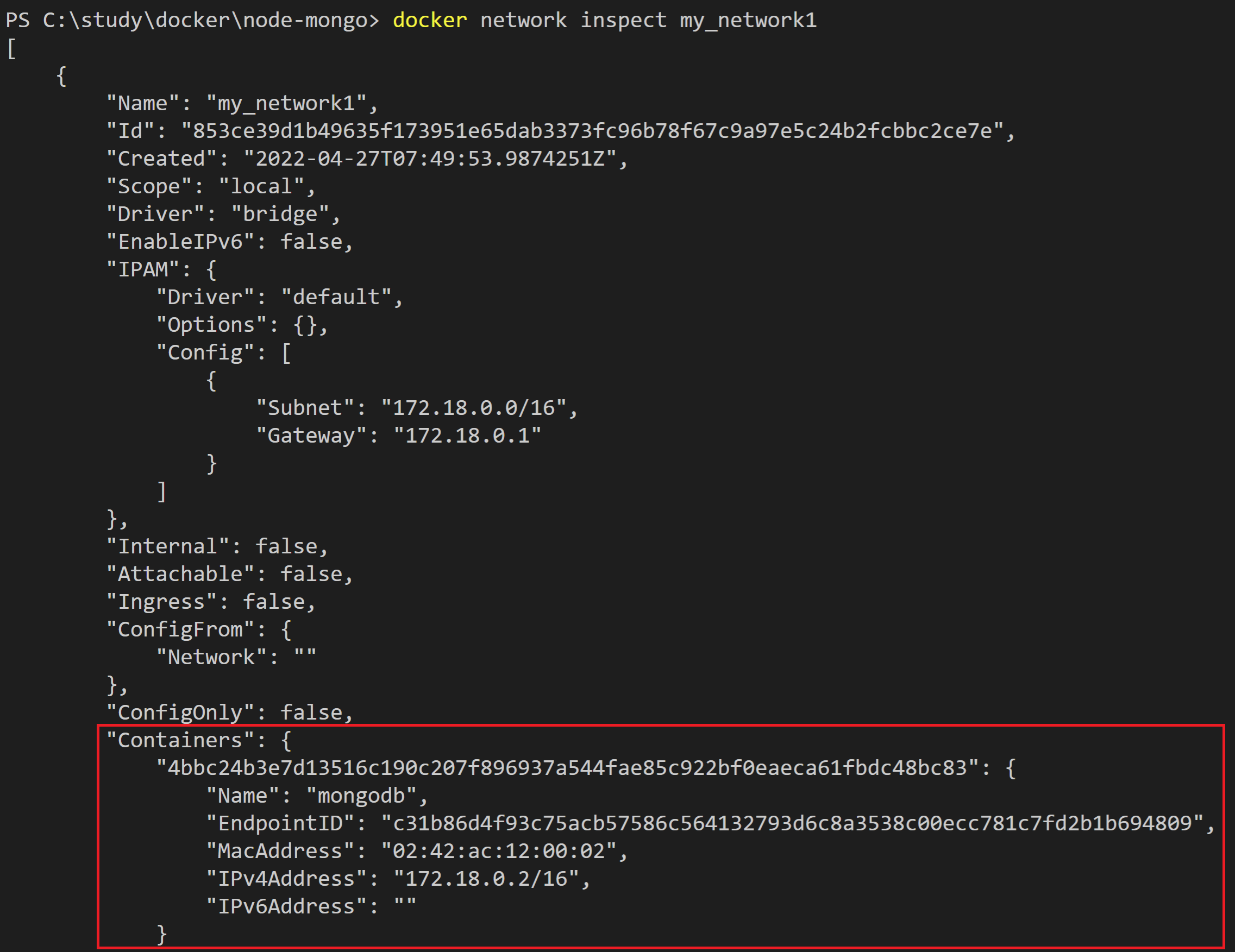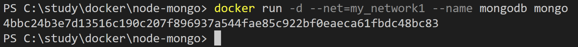 docker run -d --net=my_network1 --name mongodb mongo