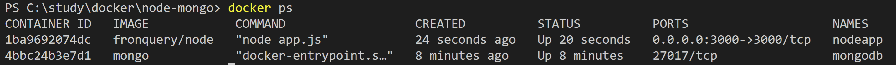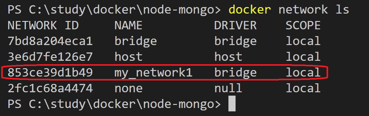 node 컨테이너 역시 --net으로 mongodb와 같은 네트워크인 my_network1을 지정해 주고 있습니다.