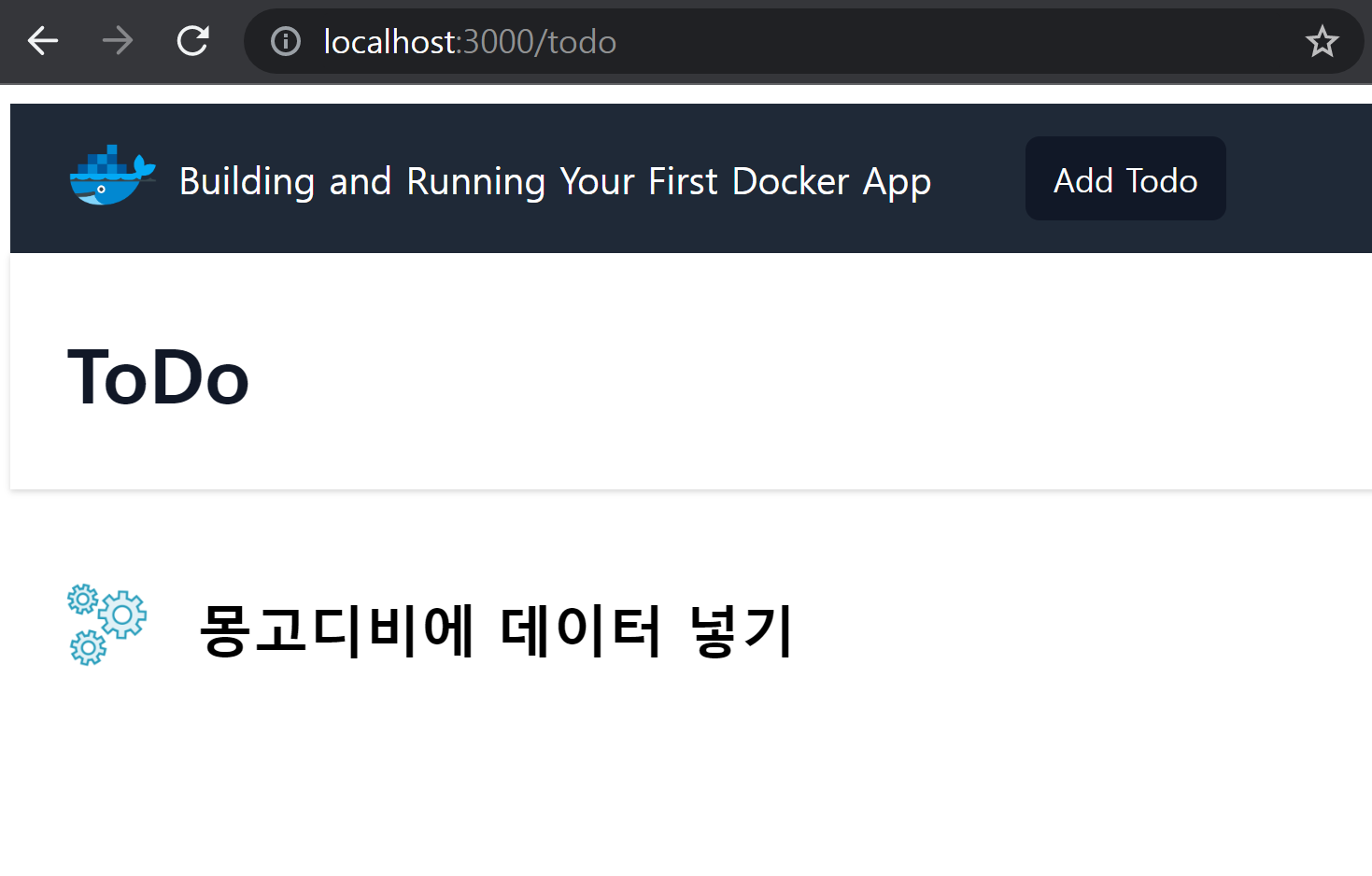 데이터가 잘 입력되고, 입력된 데이터를 가져와서 다시 출력이 잘되고 있습니다. 이 모든 과정이 두 개의 컨테이너에서 통신해서 이뤄지고 있습니다.