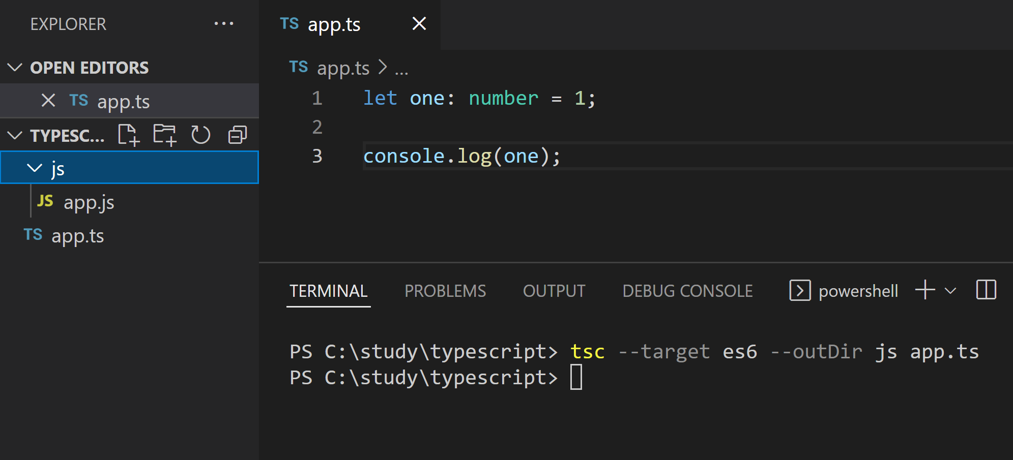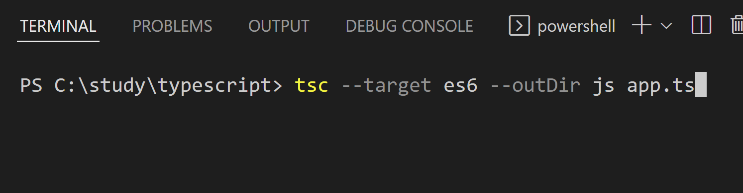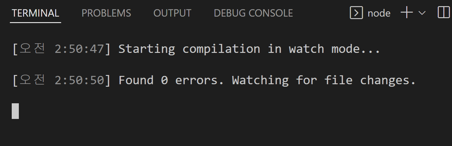 이제 터미널에서 tsconfig.json파일에 지정된 옵션을 사용해서 시작할 수 있습니다.