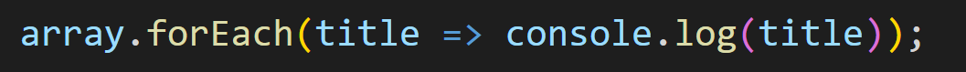 다음 예제는 동일한 forEach함수를 호출하고 있지만 단일 매개변수를 화살표 함수에 전달하고 있습니다. 매개변수를 하나만 전달하는 경우는 괄호가 필요하지 않습니다. 물론 괄호를 포함시켜도 정상 작동합니다.