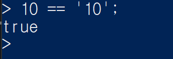 부울 표현식을 입력했습니다. 이 라인은 자바스크립트 표현식이기 때문에 REPL은 결과를 출력해 주고 있습니다.