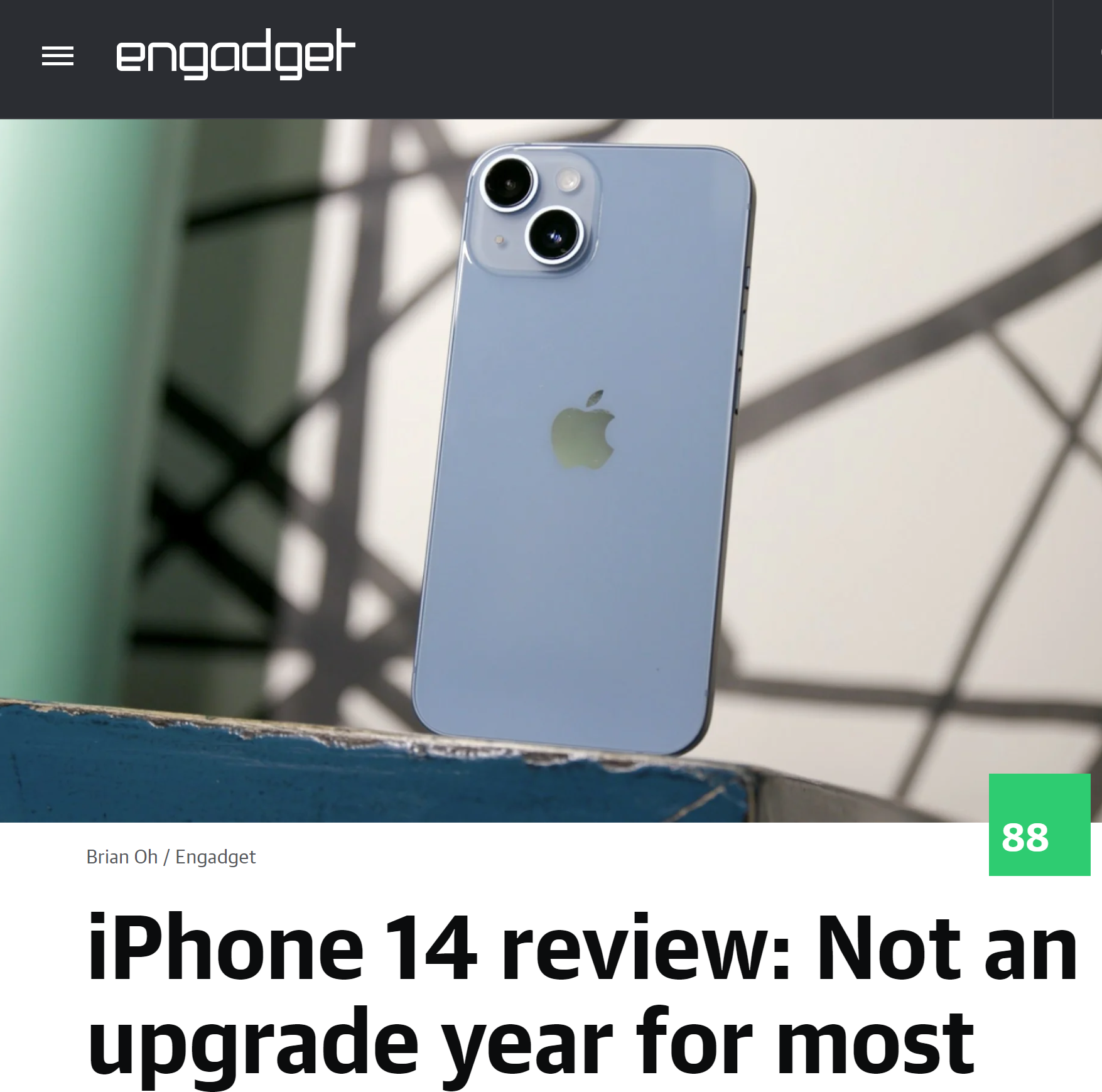엔가젯은 아이폰14와 아이폰13은 매우 비슷하고, 아이폰13은 아이폰12와 비슷하다고 말하고 있습니다. 따라서 업그레이드의 필요성이 낮다고 보고 있습니다.